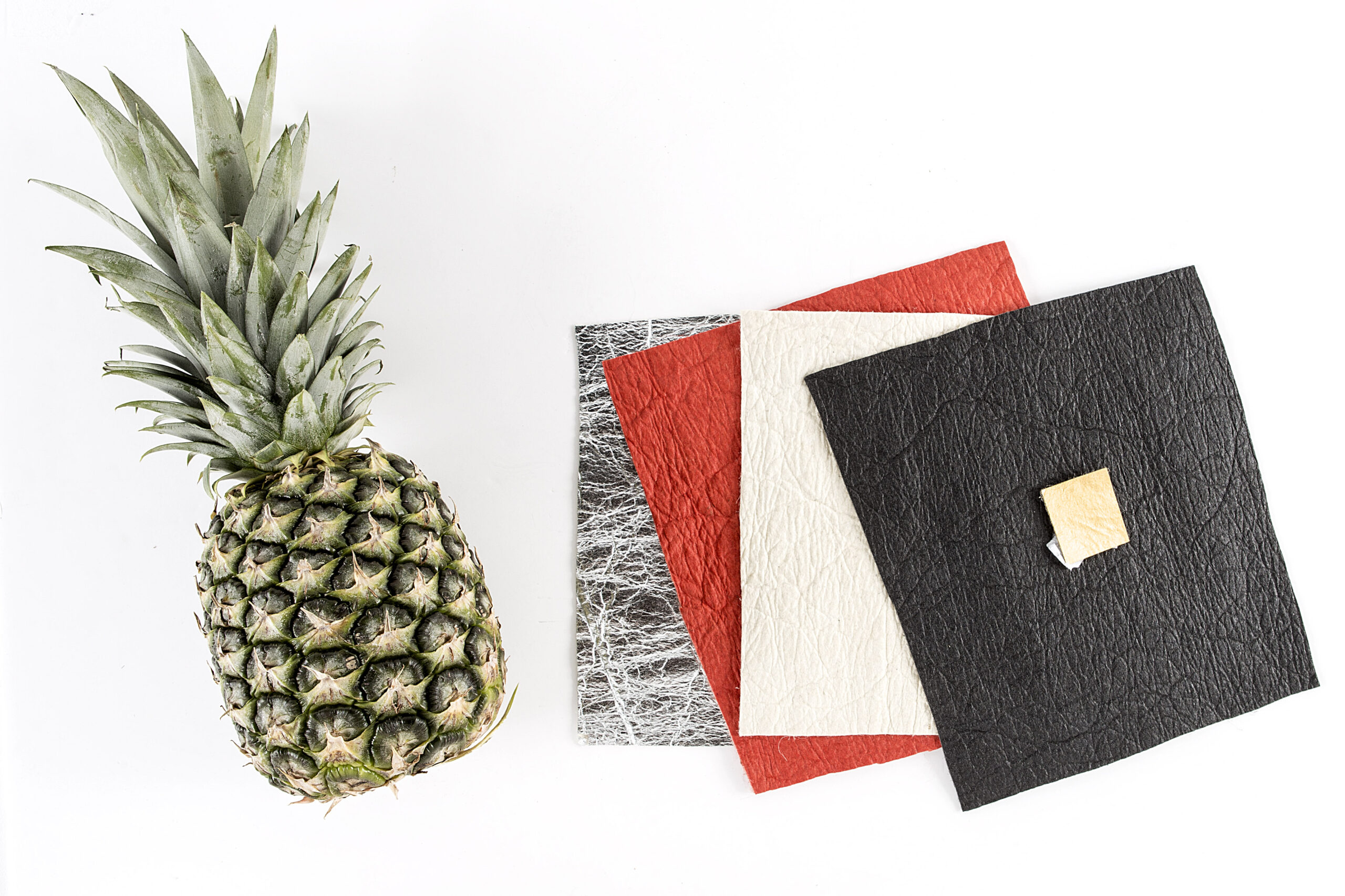 About 480 leaves (from 16 pineapples) yield 1 square meter. Biomass byproduct becomes fertilizer or biofuel.